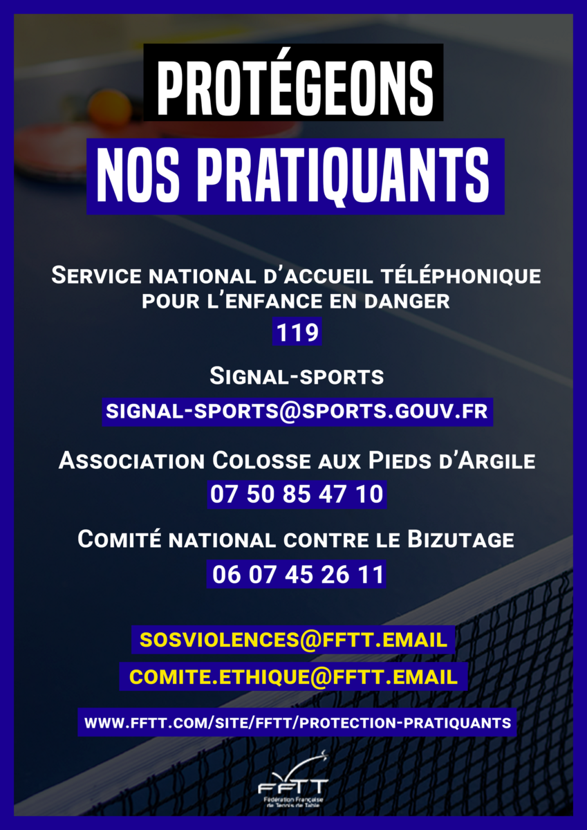 Pour des informations complémentaires, vous pouvez également consulter la page dédiée à ce sujet sur le site officiel de la Fédération Française de Tennis de Table (FFTT).