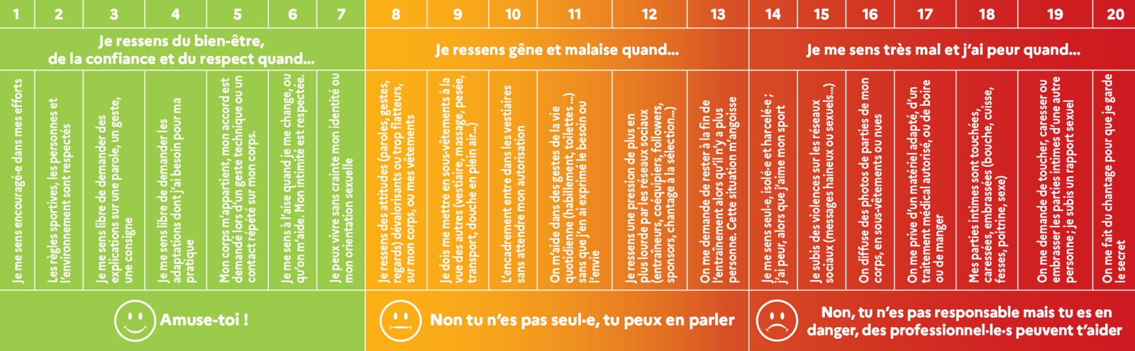 C'est pourquoi nous avons créé cet espace dédié. Il a pour objectif de vous fournir toutes les informations et les outils nécessaires à la prévention et à la lutte contre toutes les formes de violences (physiques, verbales, psychologiques, etc.) dans le cadre de nos activités.